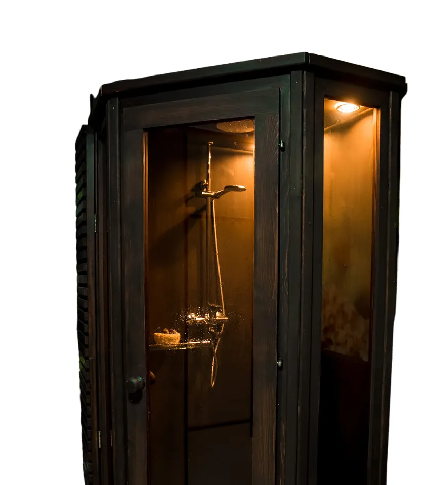 Деревянная угловая душевая кабина из кедра